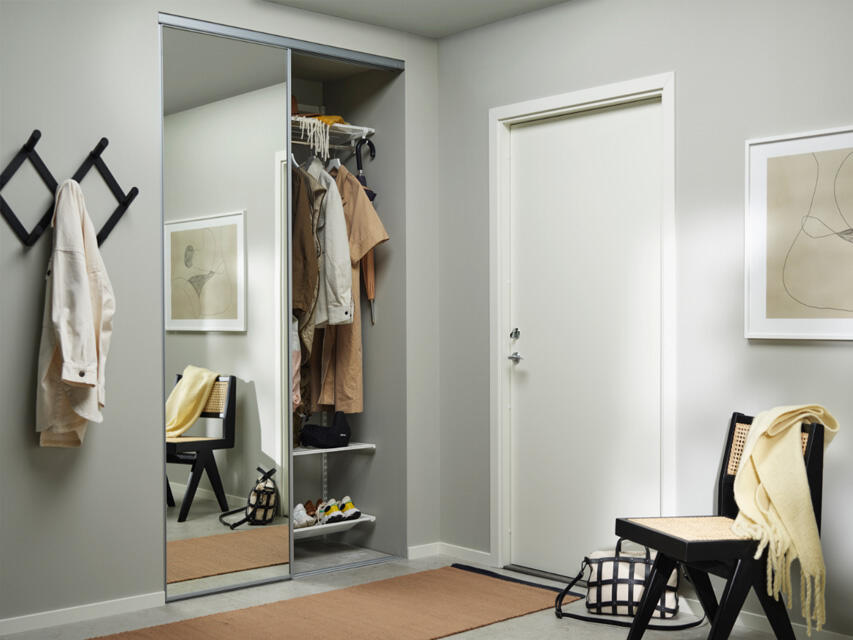 Vi vet at god oppbevaring kan forenkle hverdagen og kanskje til og med øke livskvaliteten. Smart oppbevaring bruker overflaten effektivt, men rommer likevel alt som kreves. Skyvedører sparer verdifull plass som ellers ville blitt tatt opp av garderobedører som må ha plass til å svinge. Det er da kunden vil sette pris på at det er plass til overs for det viktigste – bo og sosialt samvær.